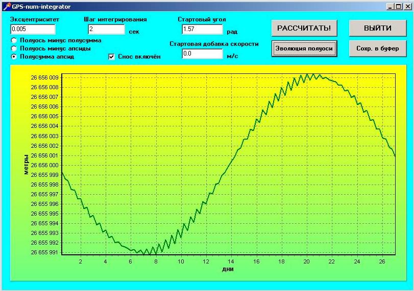 4. Кнопка Эволюция полуоси На основе данных "Полусумма апсид" рассчитывается